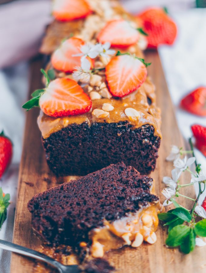 Schokoladenkuchen mit Erdnussbutter-Karamellsauce
