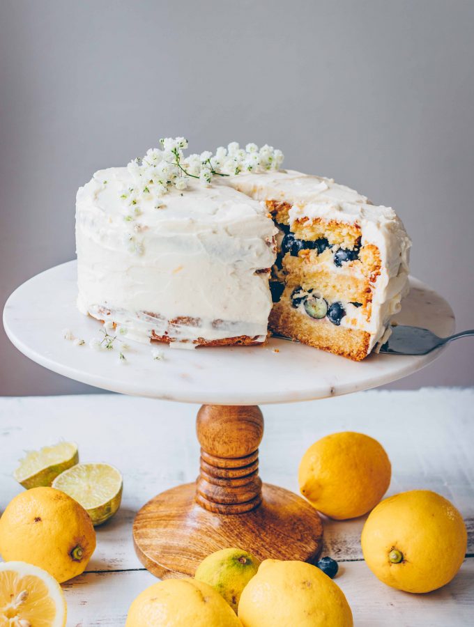 Zitronen-Blaubeertorte mit Weißer Schokoladencreme