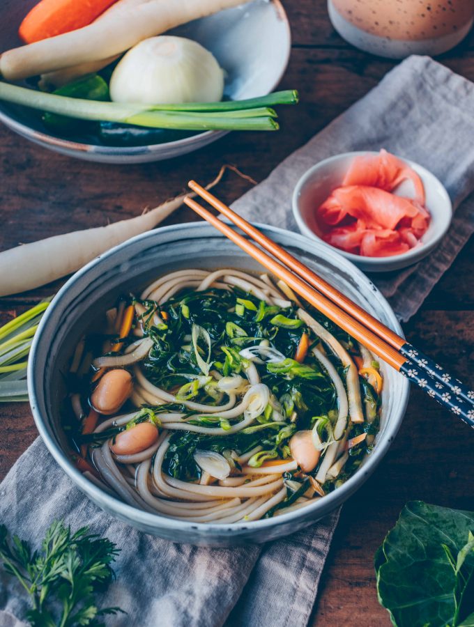 Miso-Suppe mit Udon Nudeln und eingelegtem Ingwer