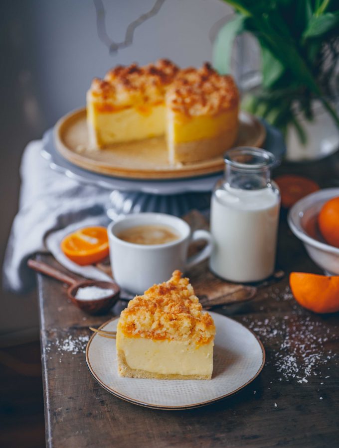 Mandarinen Schmand Kuchen mit Kokosstreuseln