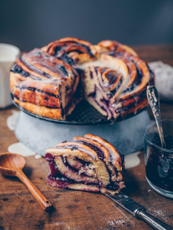 Blaubeer Babka mit Vanilleglasur | veganer Hefezopf