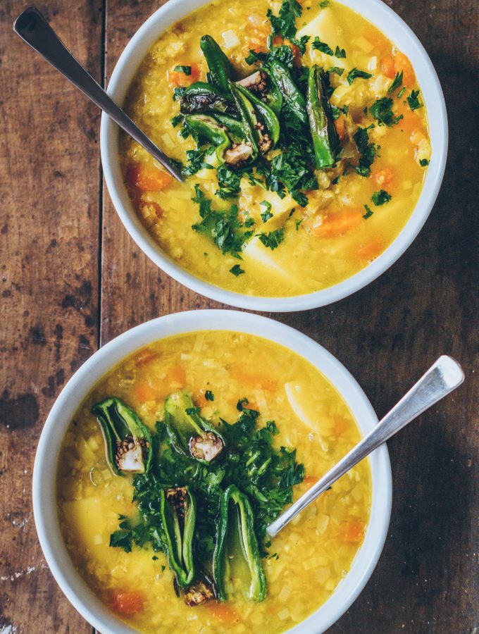 This post is also available in english Wärmender und leckerer gelber Linsen Eintopf für kalte Wintertage. Mit pflanzlichem Eiweiß aus den Linsen und viel Gemüse. Nach einem langen Spaziergang genau das Richtige um wieder seine leeren Batterien aufzutanken. Oder ihr füllt die heiße Suppe in Thermobecher und nehmt sie mit auf ein gemütliches Winterpicknick.