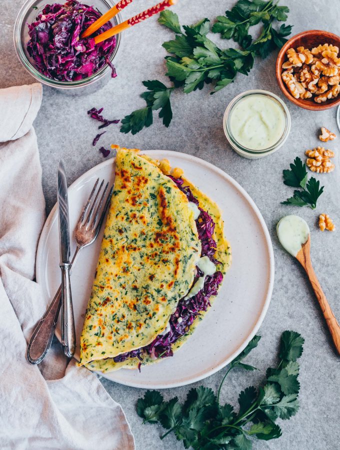 Kräuterpfannkuchen mit Rotkohlfüllung