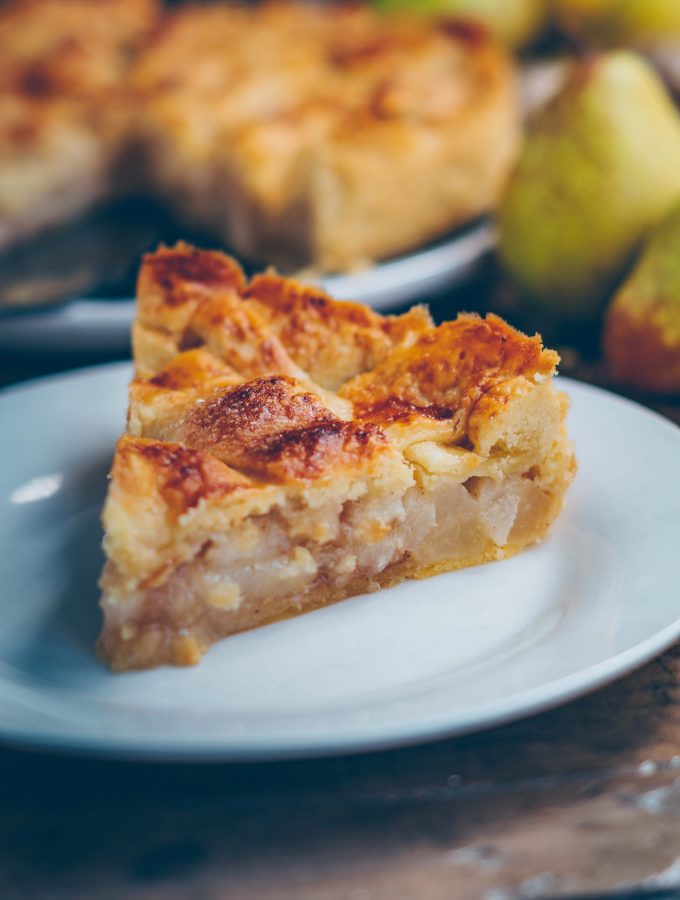 This post is also available in english.In seiner vollen Pracht steht er vor mir. Süß duftend nach Birne & Zimt. Wie lange wollte ich schon solch eine Birnenkuchen machen. Überall sieht man zur Zeit hübsch dekorierte herbstliche Pies. Die Birne und die Blätter habe ich mit der Hand ausgeschnitten, aber man findet Ausstecher im Internet…