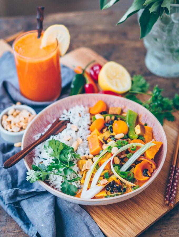 Rotes Gemüsecurry mit Karotten & Wildreis
