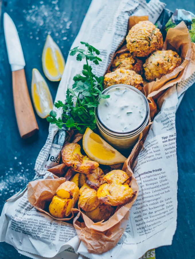 Blumenkohl-Falafeln mit Ofenkartoffeln