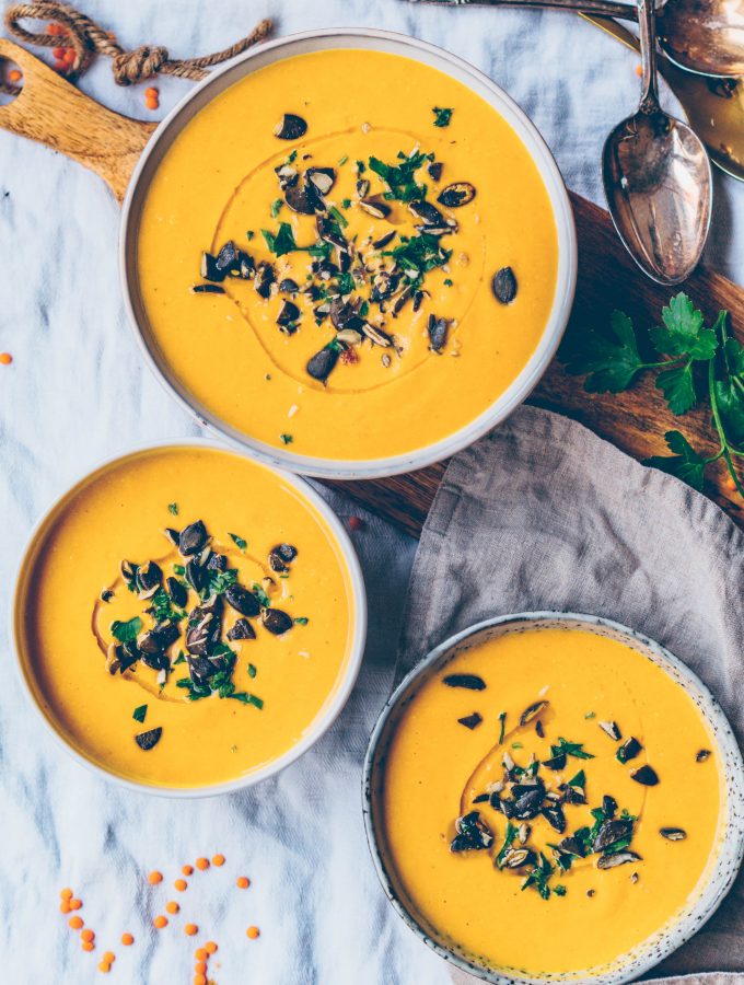 Kürbis Linsen Suppe mit Kokosmilch | vegan & einfach