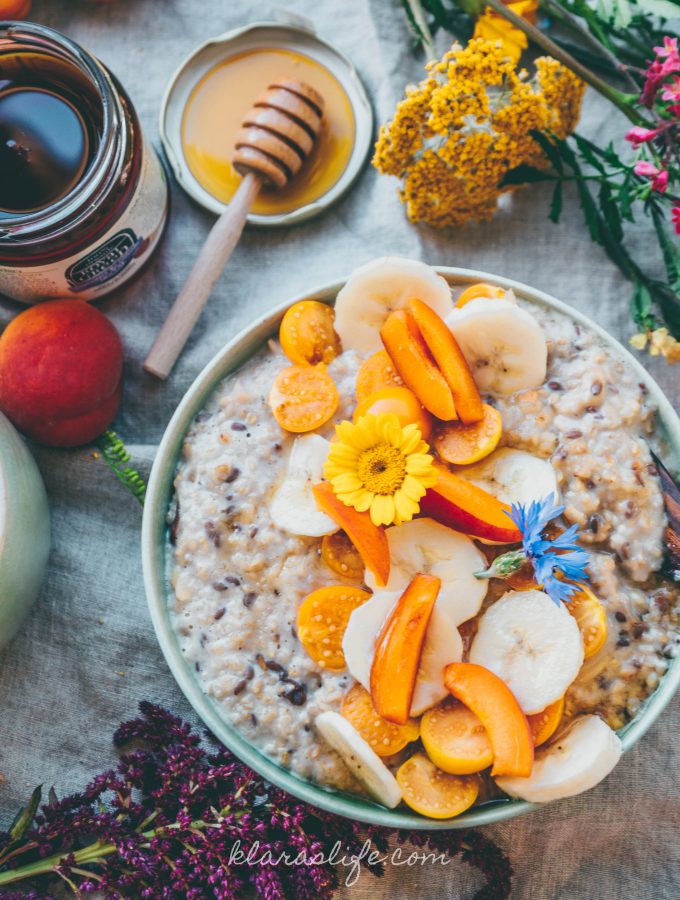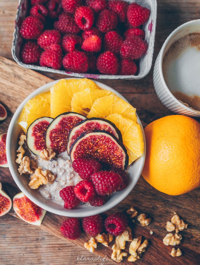 This post is also available in english.Sobald die Hitze verschwindet bevorzuge ich Porridge zum Frühstück und zur Abwechslung gibts Chai-Porridge. Ich steh ja total auf Haferflocken und sie sind super gesund. Viel Eisen, Zink, Folsäure, Vitamin E, Vitamin B2, Vitamin B6, Kupfer, Natrium, Kalium, Magnesium, Calcium und Phosphor. Ein Superfood der Alten Schule.