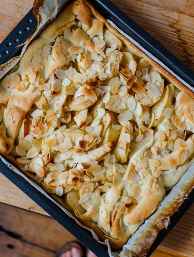 Apfelblechkuchen mit Vanille & Mandeln