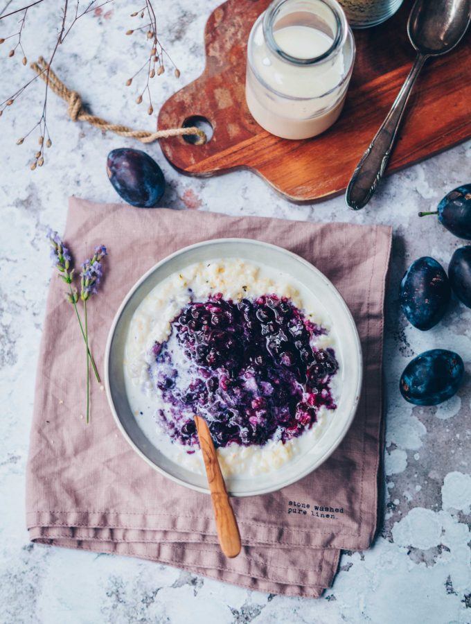 Rice Pudding with Vanilla & Lavender Blueberry Compote