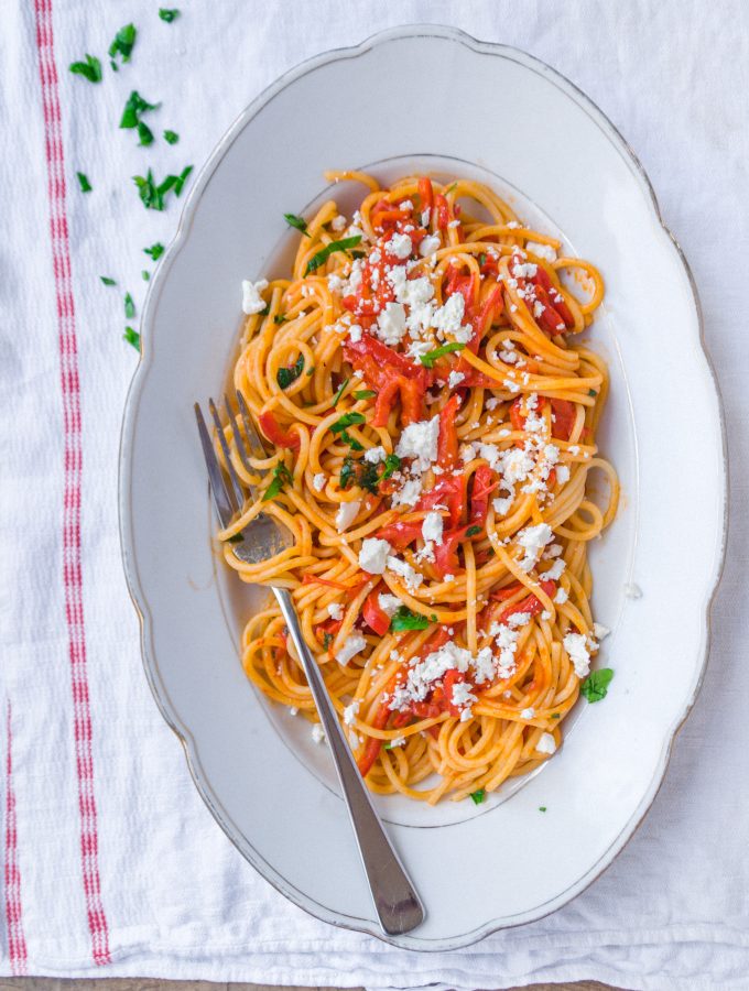 Quick Pasta Recipe with Capsicum and feta crumbles