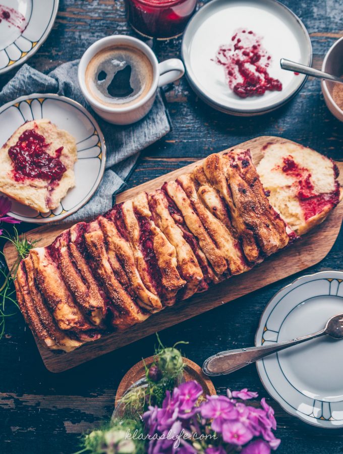 Raspberry pull apart bread with cinnamon